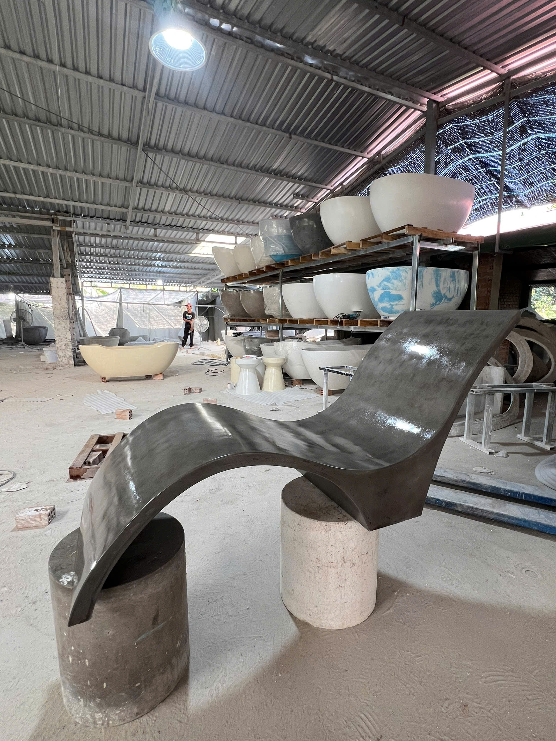 - Ghế bể bơi bê tông mài không chỉ là nơi thư giãn, tắm nắng, mà còn là điểm nhấn kiến trúc, tạo nên sự khác biệt cho không gian bể bơi.